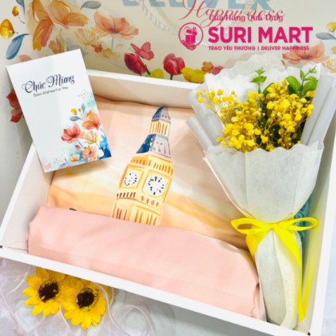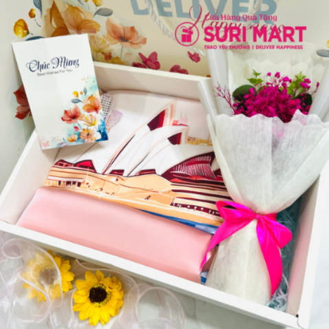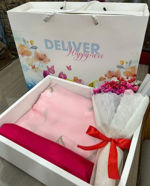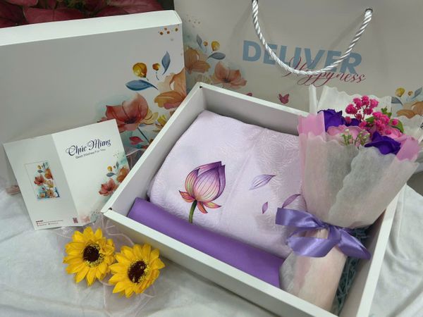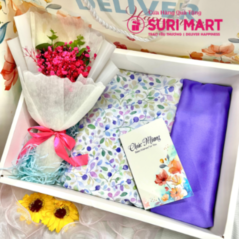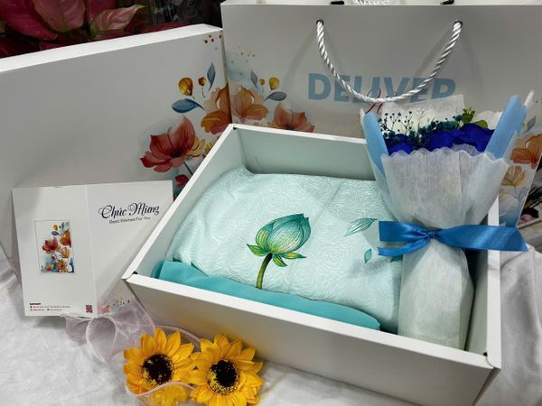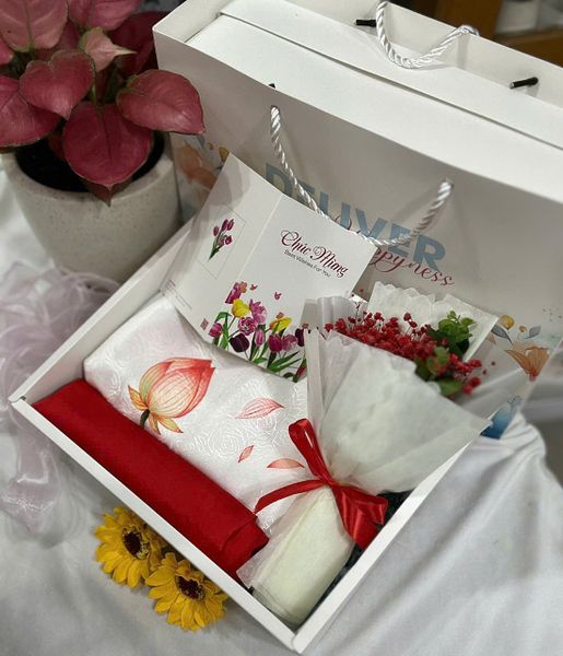 🎁 Combo sang trọng, tinh tế. Set quà bao gồm: hoa tươi, bộ vải áo dài cao cấp, hộp quà, thiệp chúc và túi giấy thiết kế đẹp mắt. Tất cả kết hợp để tạo nên một món quà chỉnh chu, tinh tế và đầy cảm xúc.
