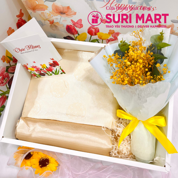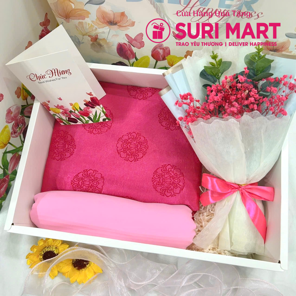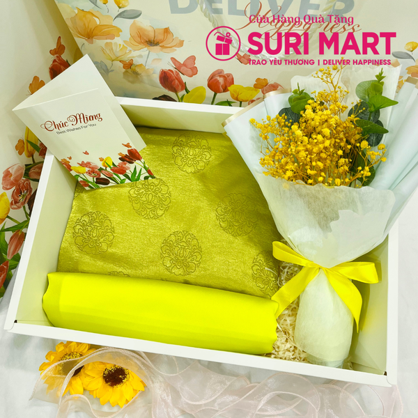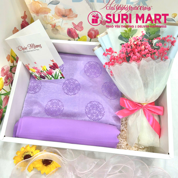 Set Bộ Hộp Combo Quà Tặng Vải Áo Dài Tơ Óng – Món Quà Sang Trọng Cho Dịp Đặc Biệt